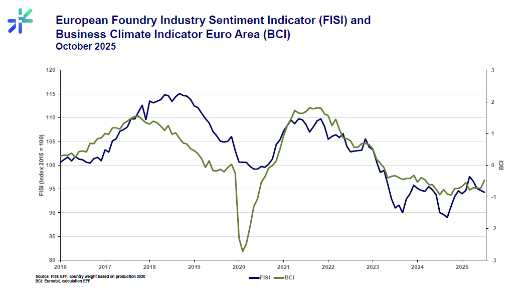 The European Foundry Industry Sentiment Index (FISI) with a minimal decline in October 2025.